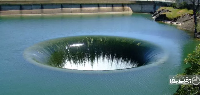 این حفره در پشت سدی در کالیفرنیا به نام «سد مونتیسلو» (Monticello Dam) قرار داشته و در نگاه اول به نظر می رسد تونلی است که به عمق زمین کشیده شده اما در واقع تنها حفره ای دست ساز بوده و برای زهکشی مورد استفاده قرار می گیرد.